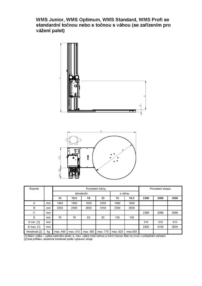 The machine is equipped with an optical sensor for measuring the height of pallets and oriented turntable stop. WMS can also easily operate in manual mode with the possibility to adjust program settings directly in the packaging cycle.